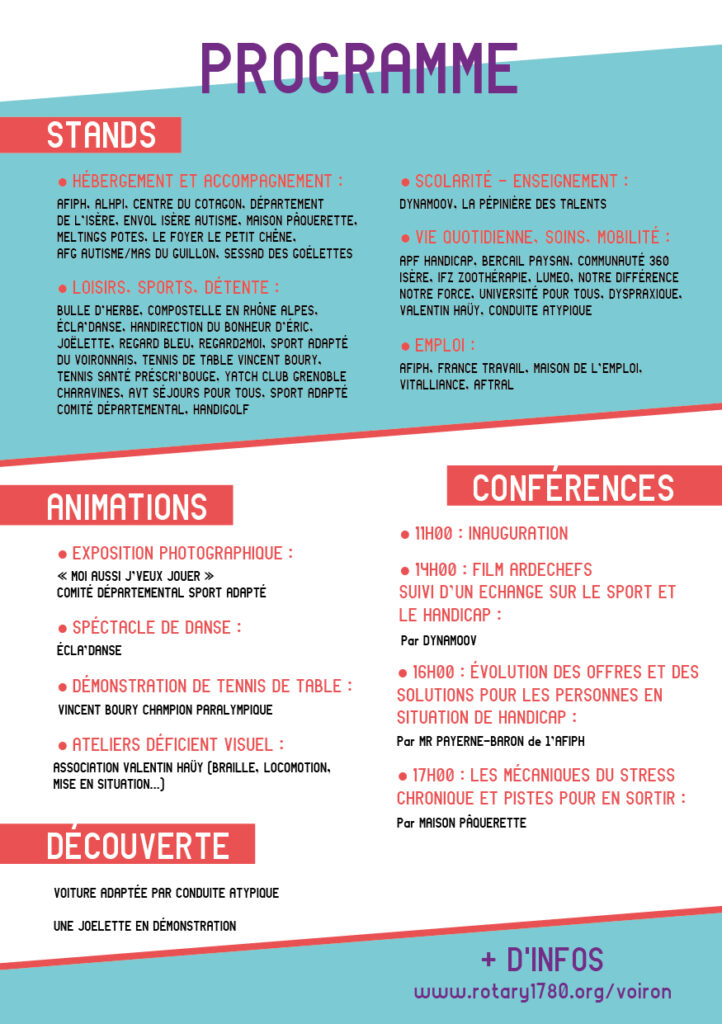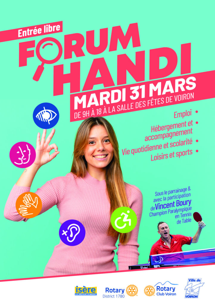 Ecla’danse sera présente à la 4ème édition du Forum Handi (organisé par le Rotary Club de Voiron en partenariat avec le département de l’Isère et la Ville de Voiron).